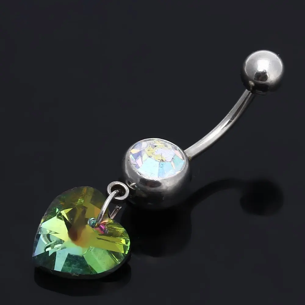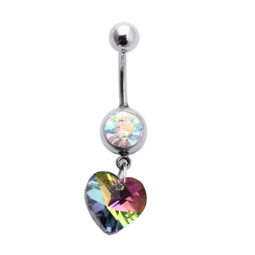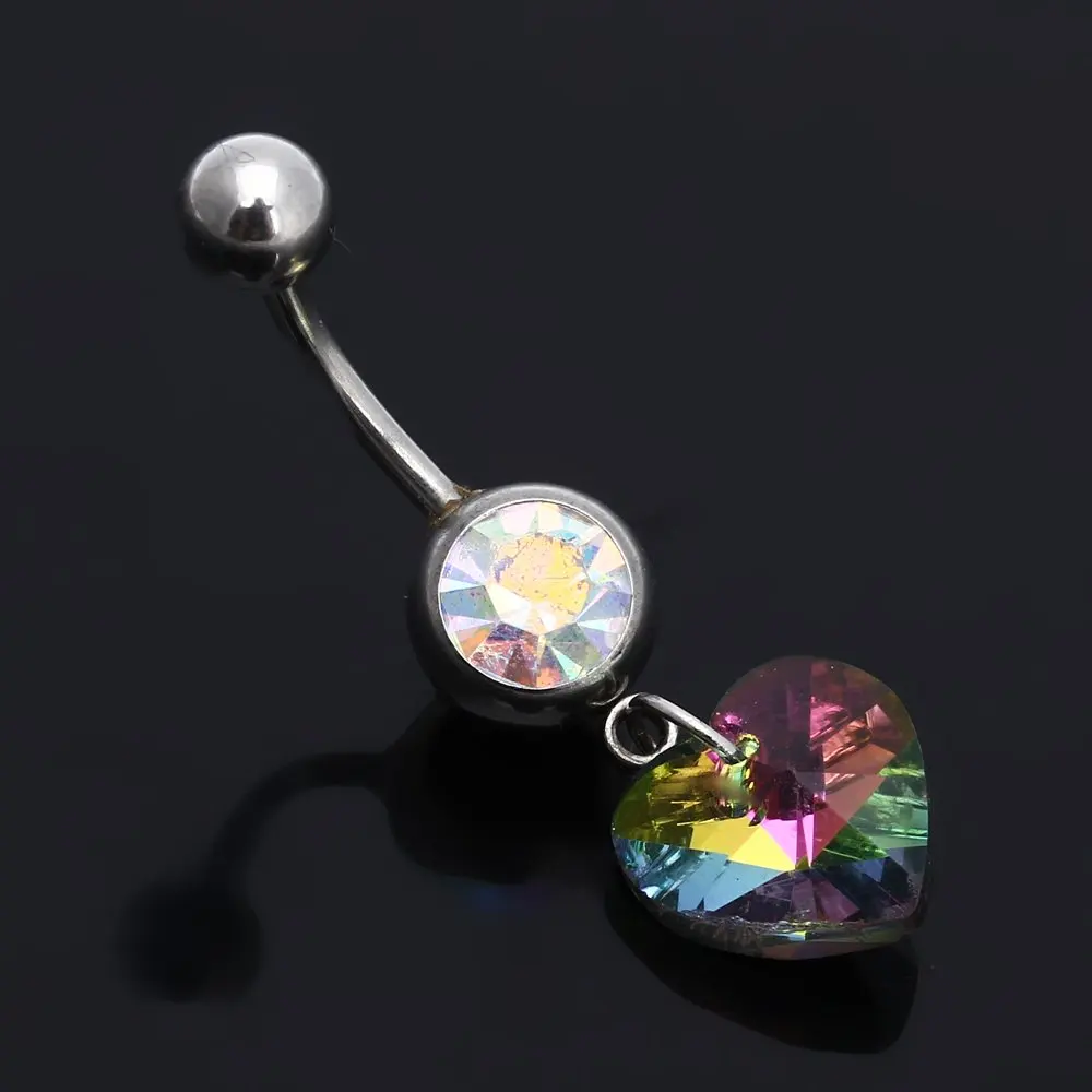Best Offer 316L Medical Steel Colorful Rhinestone Heart Pendant Navel Belly Button Ring Bar | New European Fashion Jewelry Gold Crystal Brooches for Women men Chain Tassel Brooch Lovely Peacock Brooch Pin