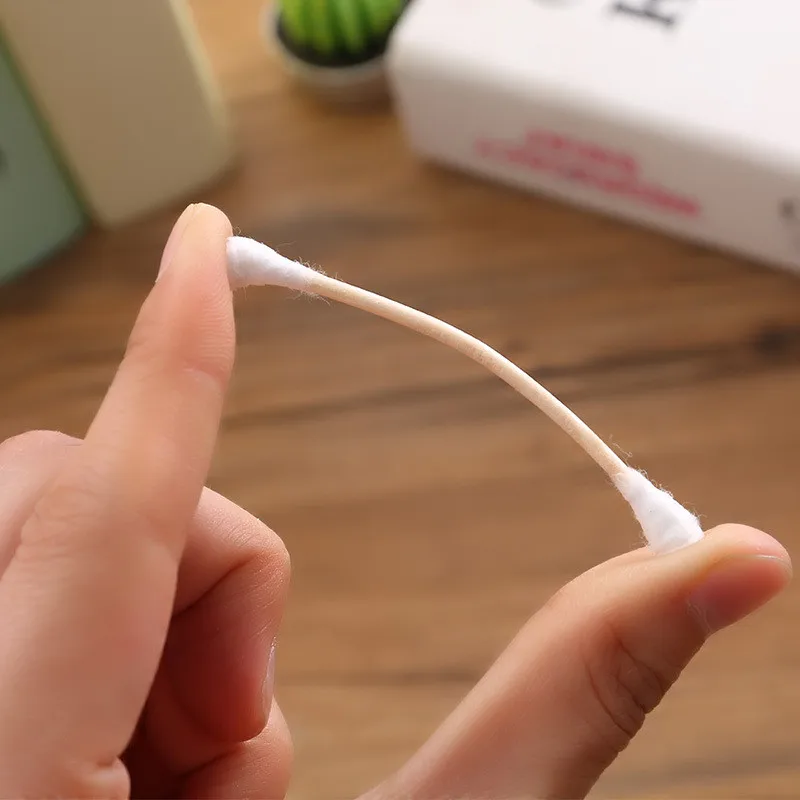 Refurbished 100 Pcs Double Head Disposable Cotton Swab Women Makeup Cotton Buds Tip Wood Sticks Nose Ears Medic