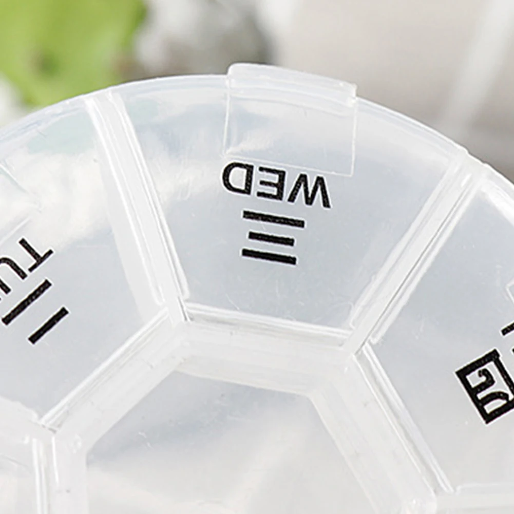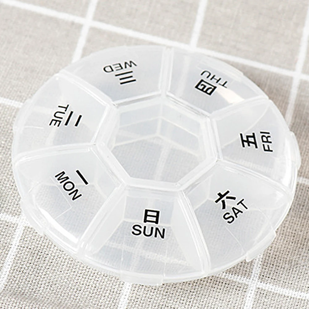 Sale Portable Round Weekly Design Mini 7 Grids Plastic Medicine Box Travel Medicine Storage Case