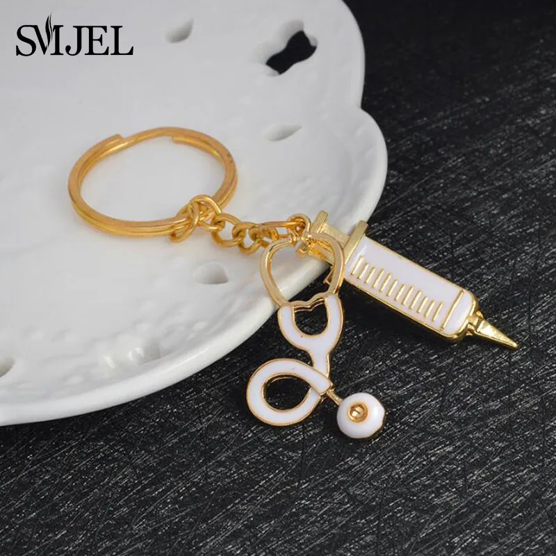 Cashback SMJEL Newest Doctor Medical Tools Stethoscope Syringe Pendants Key Chains Nurse Medical students Gr