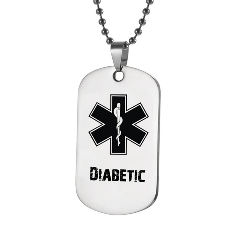 Refurbished 2019 Fashion Stainless Steel Jewelry Trendy Medical Symbol Diabetes Pendant Necklace Silver Color