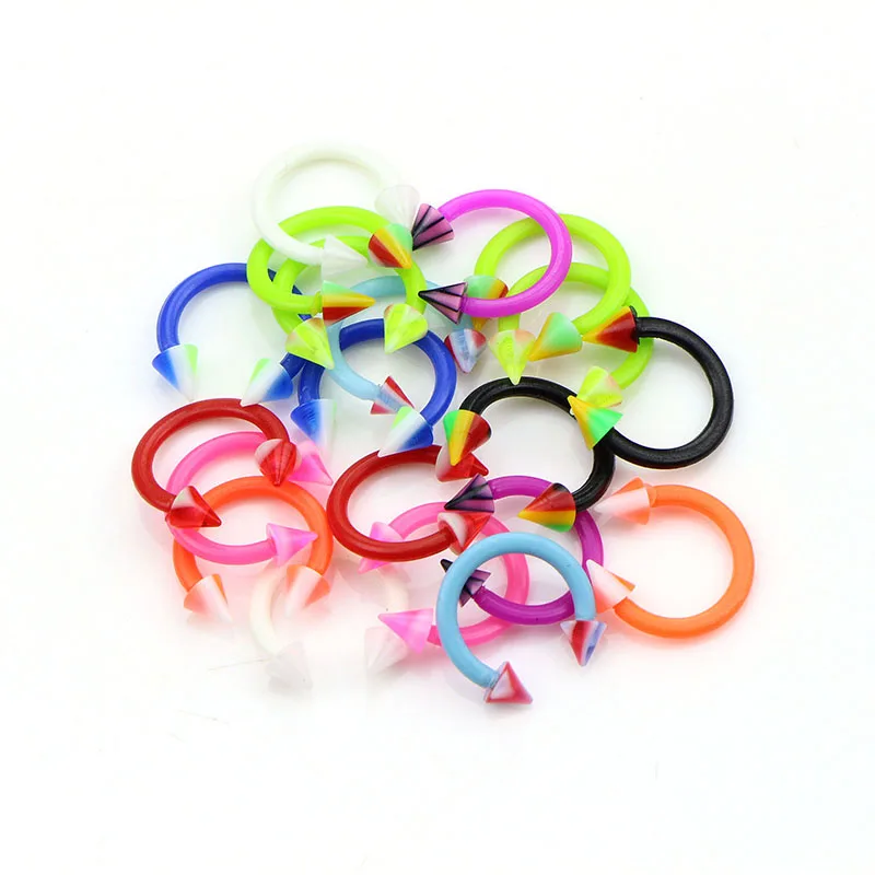 Coupon 20Pcs/Set Fashion Mixed Color Medical Acrylic Fake Nose Ring Septum No Piercing Hoop Piercing Tragu