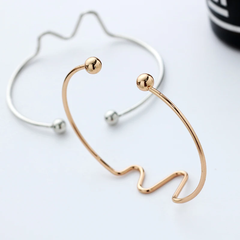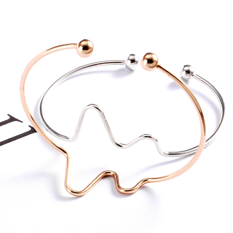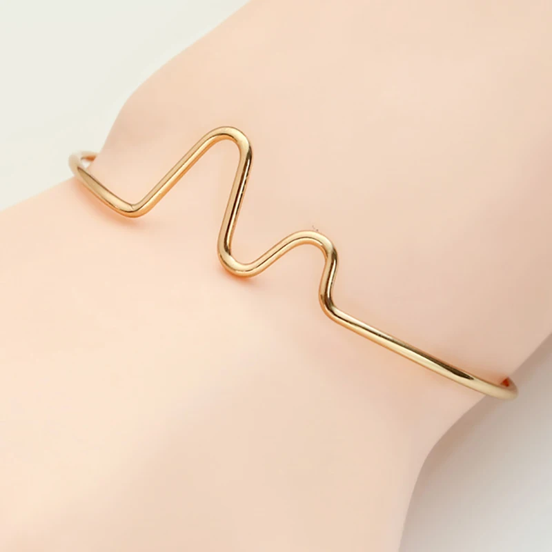 Pre-owned Fashion Simple ECG Bracelet For Women Gold And Silver Reative Medical Heartbeat Bracelet Jewelry Fr